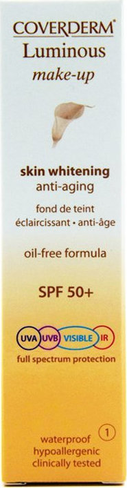 Το Coverderm Luminous make-up είναι ιδανικό για καθημερινή χρήση. Είναι ένα μοναδικό make-up, αδιάβροχο, μακράς διάρκειας, που καλύπτει τέλεια, ενώ ταυτόχρονα καταπολεμά τις πανάδες και τις κηλίδες του δέρματος. Η συνδυασμένη δράση της Alpha-Arbutin και της βιταμίνης C προσφέρει μείωση των δυσχρωμιών και πρόσθετη αντιγηραντική φροντίδα.
